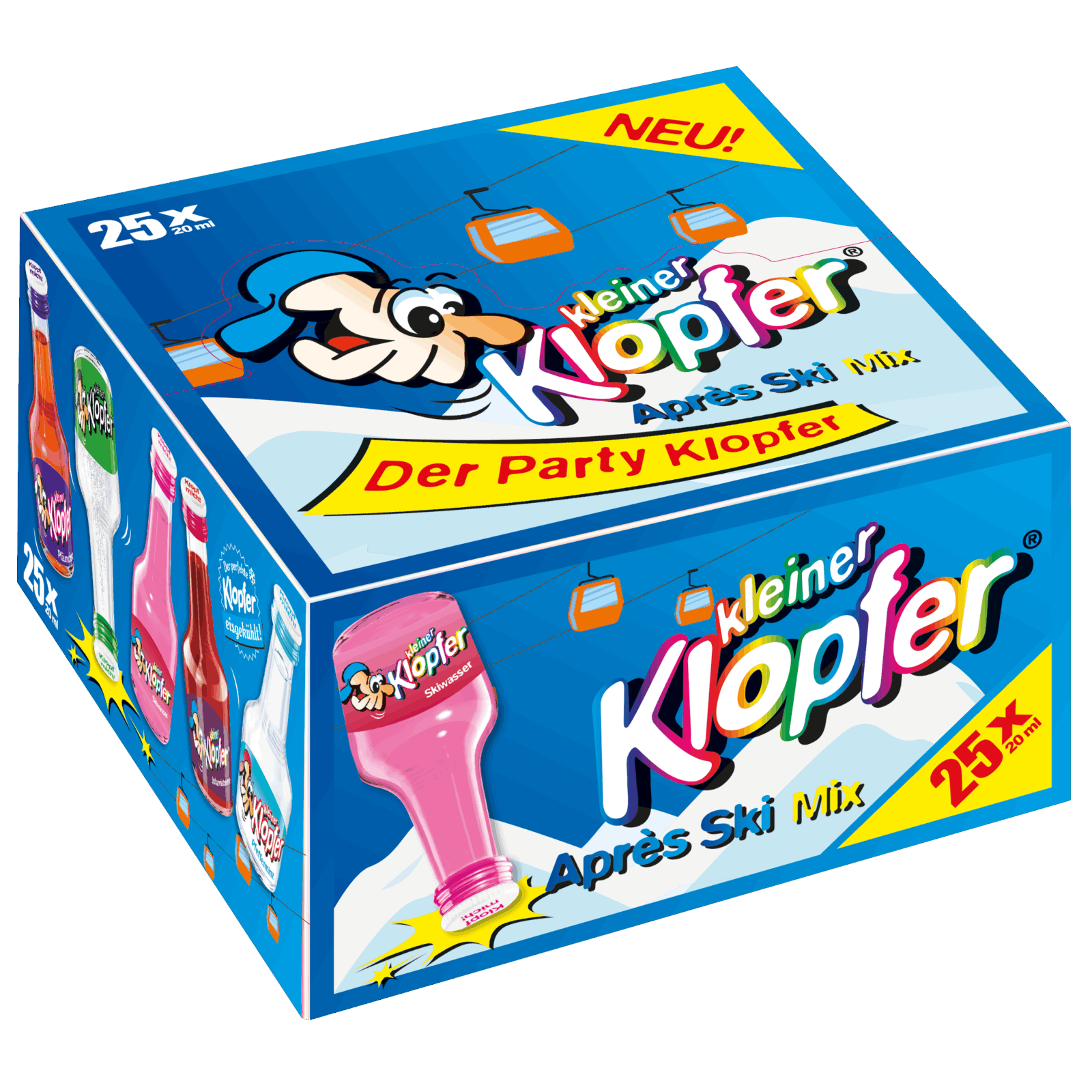 KLEINER KLOPFER ist Kult und mit seiner größten Sortenvielfalt unangefochtener Marktführer im Segment der Fruchtliköre in Kleinflaschen. Er steht wie keine andere Marke für Partymomente und emotionsgeladene Abende. Der neue KLEINER KLOPFER Après Ski Mix im 25er-Pack weckt durch sein auffälliges Design sofortige Aufmerksamkeit am Regal. Das Original mit dem hohen Wiedererkennungswert schafft Vertrauen, das kultige Klopf-Ritual sorgt für emotionale Bindung, und die saisonale Limitierung verstärkt den Impuls zum Zugreifen.