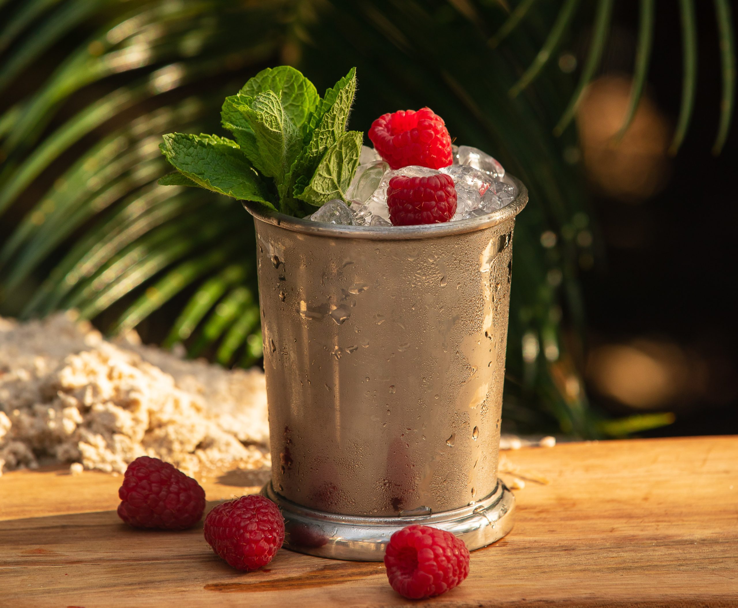 Alle Zutaten, bis auf den Chiriqui in ein mit Eis gefülltes Glas geben und leicht stößeln, anschließend mit dem Rum übergießen und gut rühren. Danach mit crushed Eis bedecken und mit Himbeeren und Minze garnieren.
